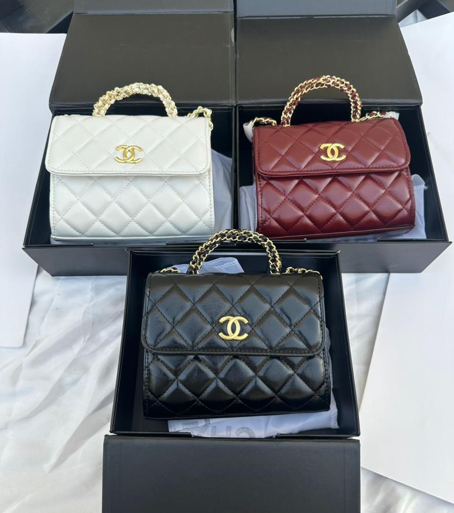 شنطة شانيل العصرية تعكس روح الموضة الحديثة مع لمسة من الفخامة الكلاسيكية بتصميمها الأنيق وتنوع ألوانها يجعلها قطعة أساسية لكل امرأة تحب الجمع بين التميز والرقي، خاصة مع لمسة شعار شانيل البارز.